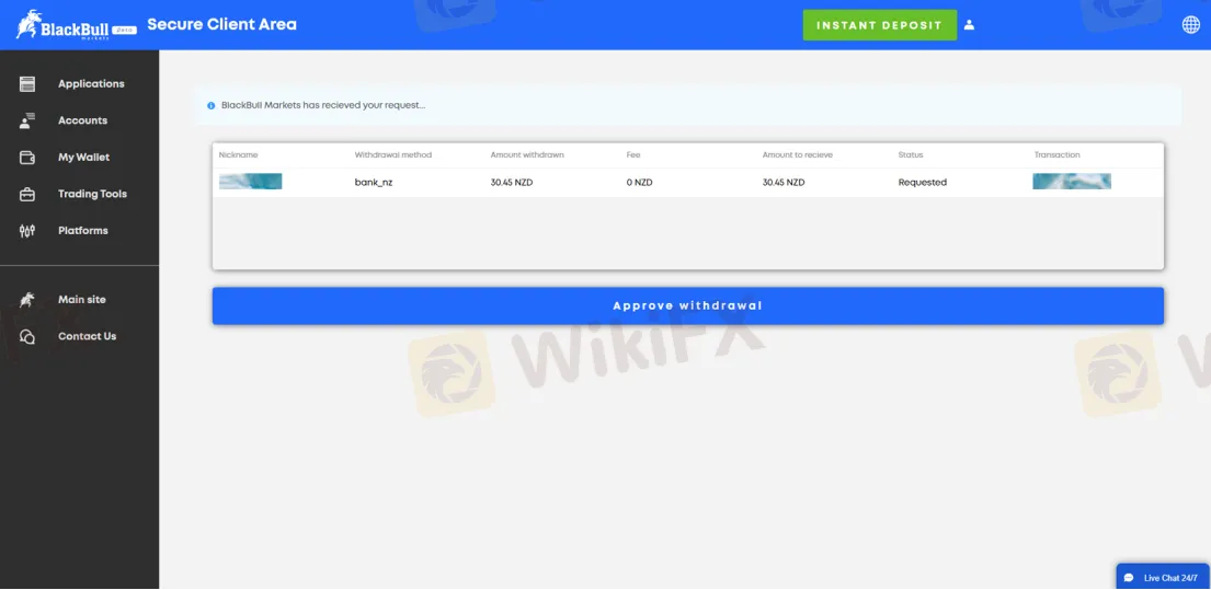 Puoi depositare ma non prelevareBlackBull . Stai attento. Mi è stato chiesto di pagare il 30% del saldo del mio conto per rilasciare il controllo del rischio