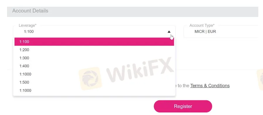 | Rapporto di leva finanziaria massimo | Fino a 1:1000 |