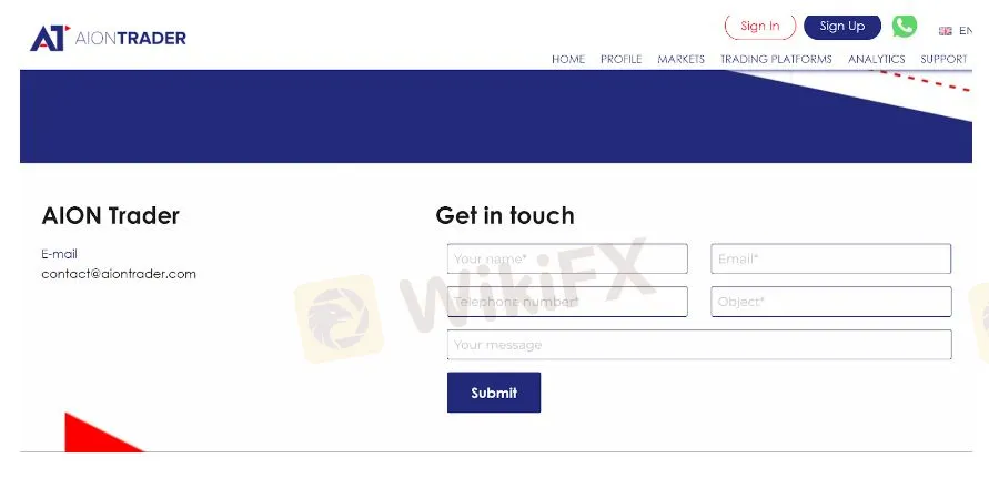 UN: AION TRADER offre supporto principalmente tramite l'indirizzo e-mail, contact@aiontrader.com.