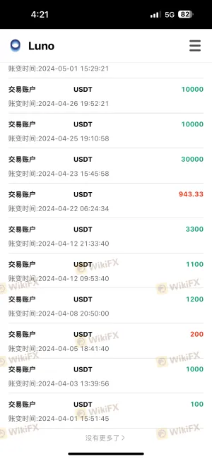 La piattaforma di trading LUNO è una truffa! La piattaforma di trading che hanno progettato è perfetta e bellissima, facile da usare e altamente ingannevole! Dopo aver depositato e fatto trading, mi sono sentito molto bene, ma quando ho provato a prelevare, è stato bloccato. Hanno detto che devo pagare le tasse prima e non posso dedurle dal mio conto. Dopo aver pagato le tasse, mi hanno chiesto di pagare una multa per violazione! Non hanno scrupoli e possono continuare a comunicare con il servizio clienti in qualsiasi momento, mantenendo un canale continuo di truffa! Il saldo del mio conto è stato congelato: 55.434,03396 USDT piattaforma truffa