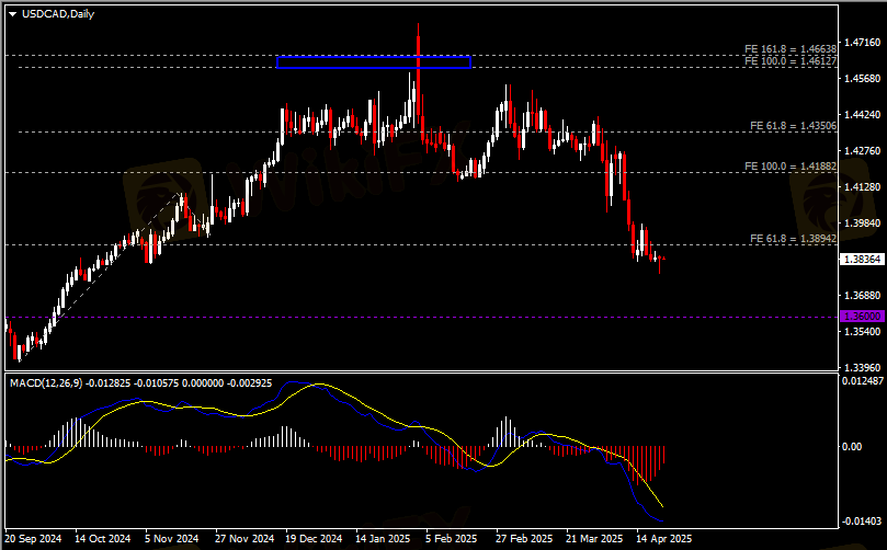 日线图显示美元兑加元跌势暂缓,当前仍承压于1.3890阻力。从MACD来看,快慢线呈拐向,红色动能柱温和收缩。汇价走势基本和动能柱的变化一致。