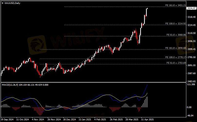 现货黄金于周一开盘持续走高,目前创下的历史新高为3,430美元。