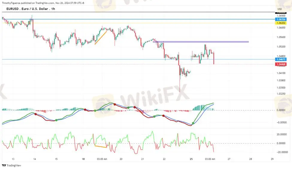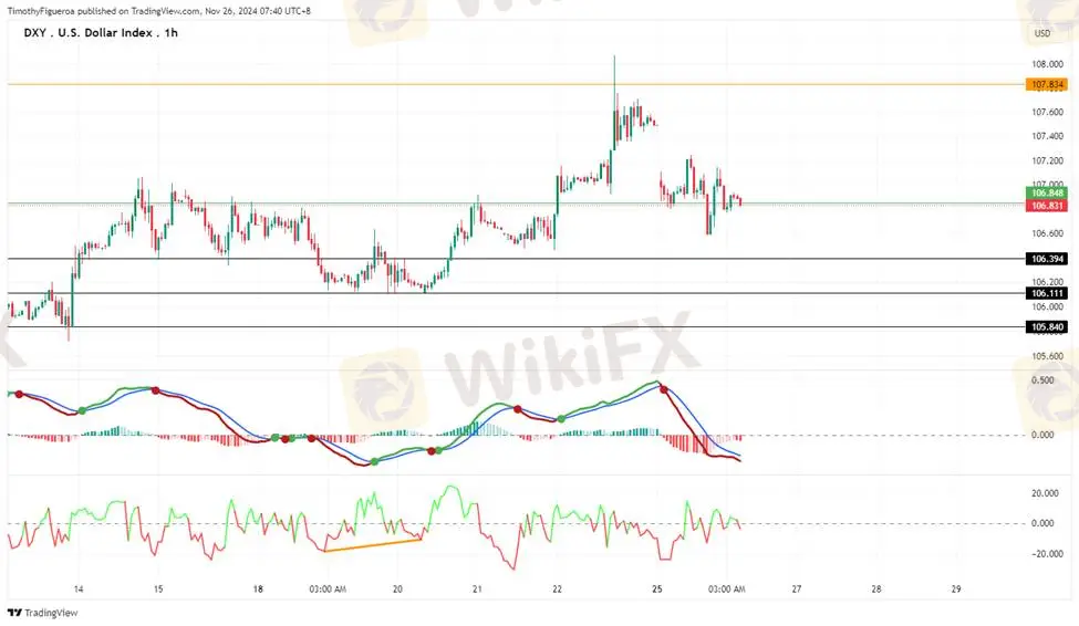 DXY - The dollar weakened on Monday after President-elect Trump announced Scott Bessent as his pick for US Treasury Secretary. Bessent, regarded as a fiscal hawk, advocates for reduced government spending and more gradual tariffs, which are seen as negatives for the dollar. His nomination also alleviates concerns about Trumps inflationary policies, as Bessent is expected to adopt a more measured approach.