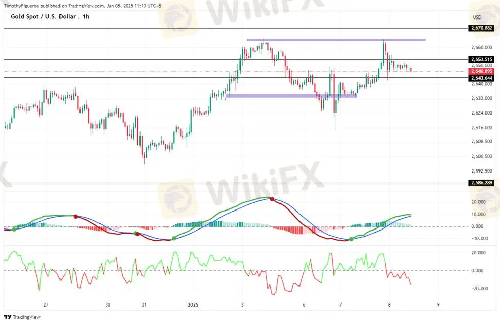 GOLD - GOLD recovered in yesterdays session, rising from the low to close above 2643.644. Further bullish movement is anticipated as the RSI prints exaggerated levels following the brief dip. Although the MACD is showing lighter bullish volume, suggesting a potential retracement before continuation, the general expectation is for prices to rise in the coming days. However, it's important to recognize that the overall price action remains within a consolidation zone, as the price faces resistance at the previous swing high, indicating a potential range-bound movement.