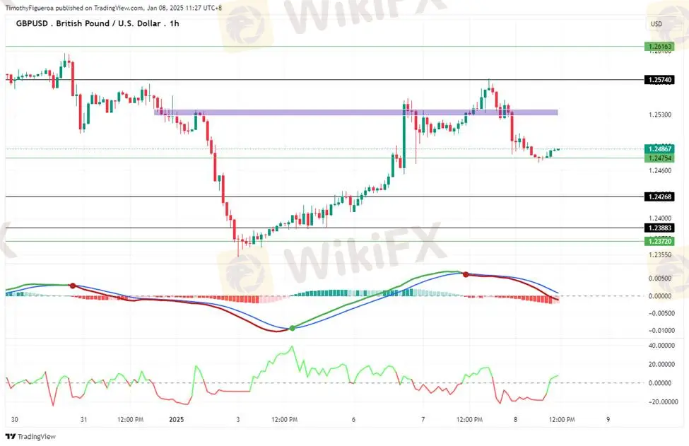 GBPUSD - The Pound faced rejection at 1.25740, failing to maintain its upward trajectory. The MACD shows increased bearish volume and momentum, with the RSI indicating further bearish potential. While the previous swing high was breached, prices quickly fell back below key levels, reinforcing selling pressure and an overall bearish outlook.