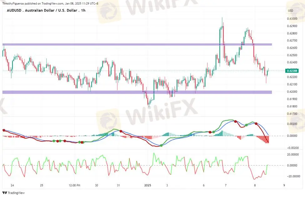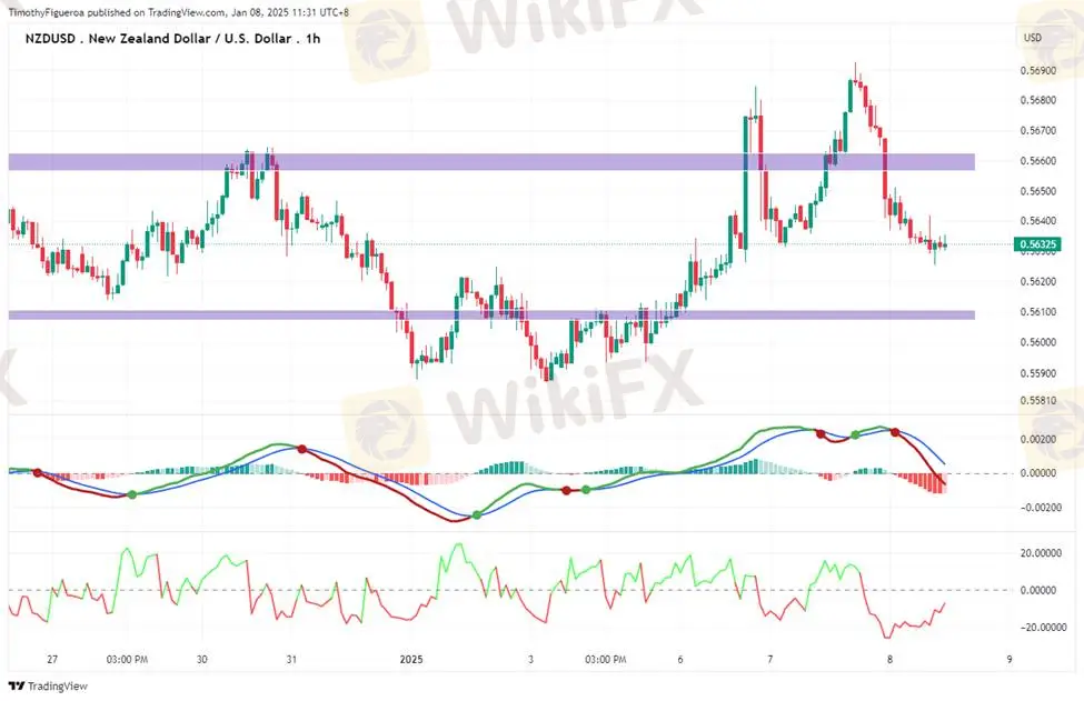 NZDUSD - Similar to the Aussie dollar, the Kiwi is under strong bearish pressure, with prices showing oversold conditions. However, the sluggish bullish retracements and barely visible upward movements highlight the strength of the bearish trend. The MACD supports this outlook with aggressive downward signals, pointing to continued bearish movement.