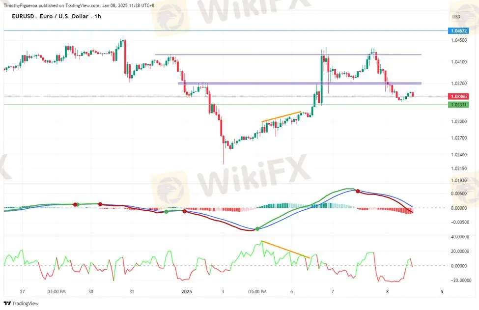 EURUSD - The Euro is seeing increased selling momentum after breaching the previous swing low. Despite finding support at 1.03311, the inability to breach the swing high twice has added pressure for further declines. The RSI reflects strengthening bearish momentum, while the MACD confirms this with rising bearish volume. While the recent price break initially shifted momentum upward, the failure to sustain higher levels suggests a potential reversal to bearish conditions. Further confirmation is awaited to solidify this outlook.
