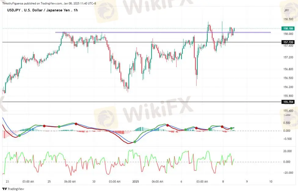 USDJPY - The Yen remained relatively stagnant yesterday but held above 157.720, suggesting bullish resilience. The RSI indicates early signs of a bullish run, while the MACD is cautiously aligning with this sentiment. Overall, price action respects bullish momentum, and a clear break of structure could emerge later today, signaling a more definitive upward move.