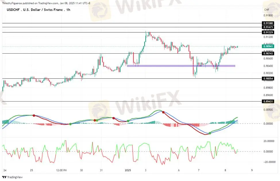 USDCHF - The Franc continues to gain bullish traction as expected. Both the MACD and RSI reflect growing market buying momentum, with price action firmly respecting the bullish structure. The outlook for this market remains positive, with further upside expected.
