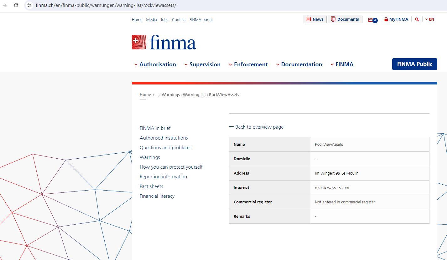 Elenco di avvertimento di società e individui non autorizzati Elenco di avvertimento - rockviewassets.com.