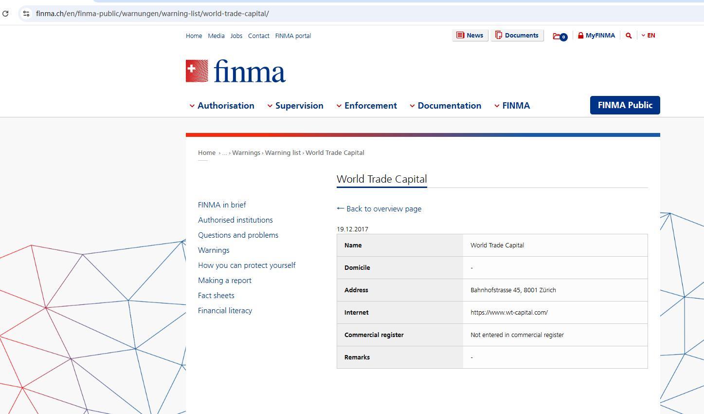 Elenco di avvertimento di società e individui non autorizzati World Trade Capital.