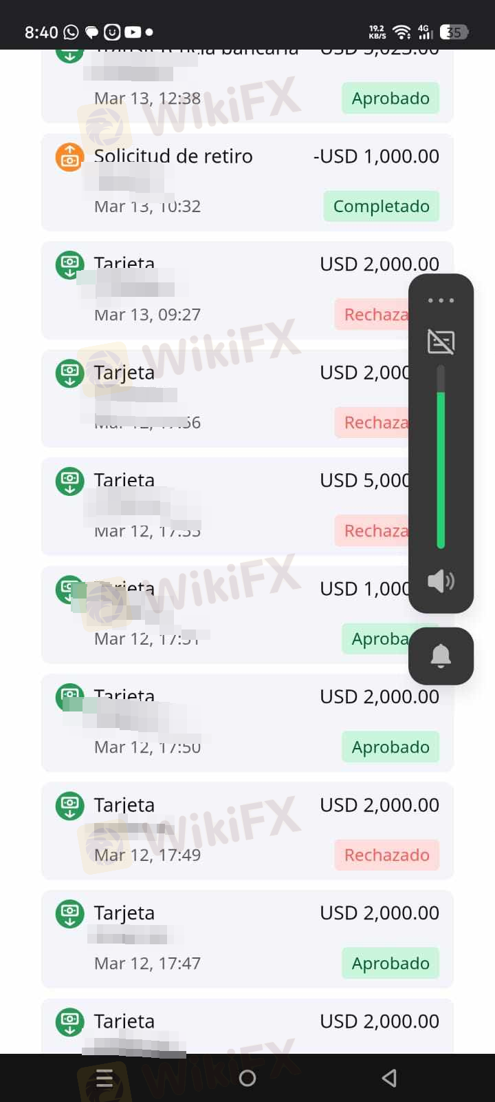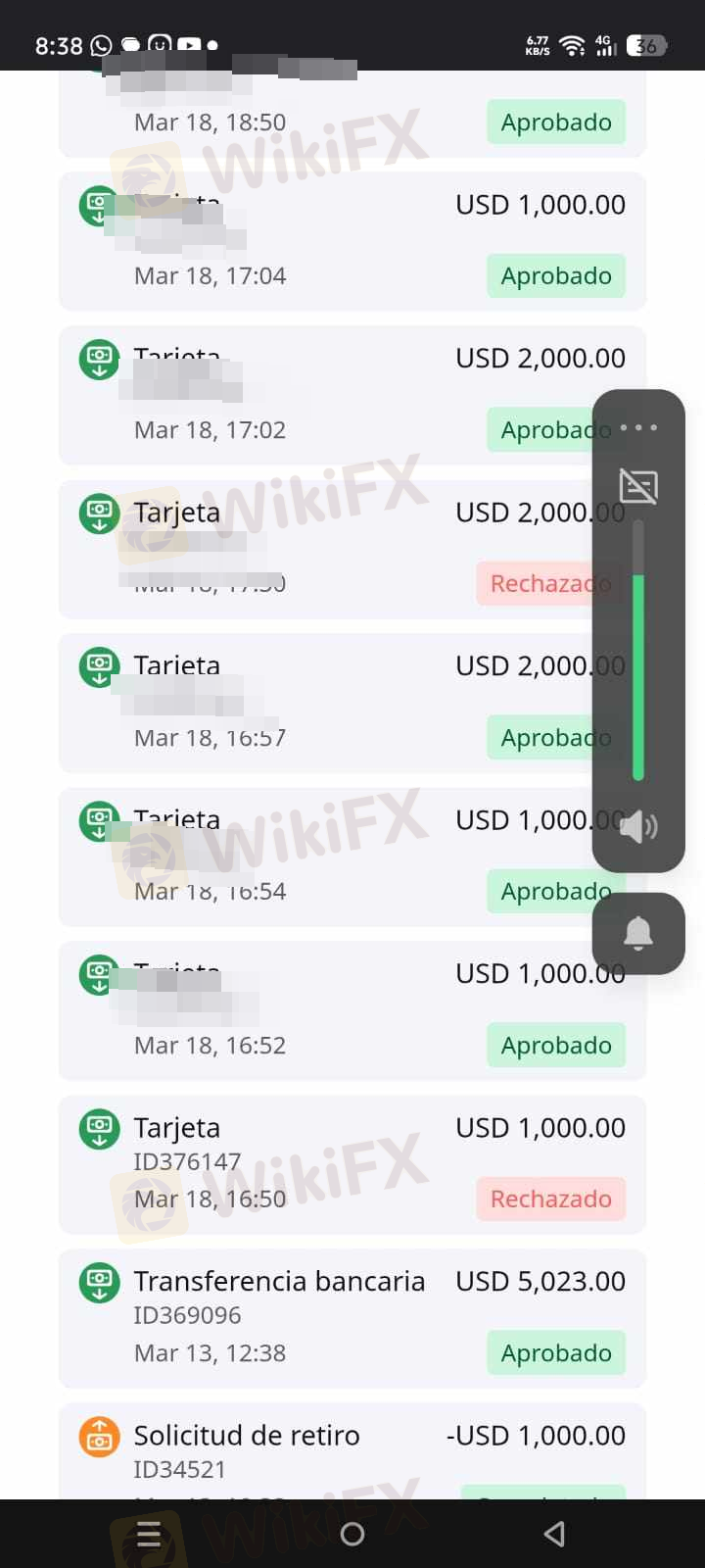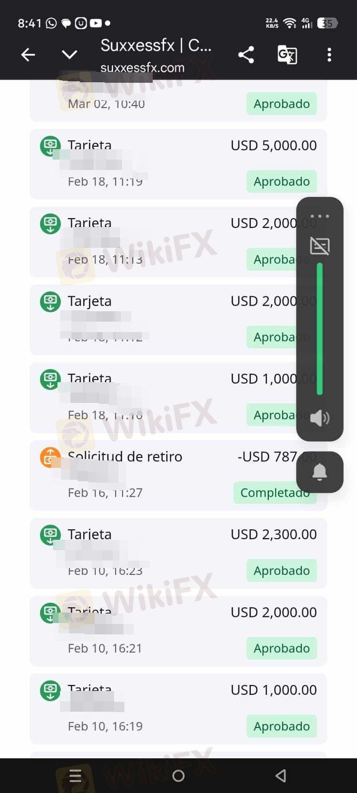 Buonasera. Due mesi fa, ho deciso di investire con suxxessfx. Sembravano un'azienda molto seria. La prima incongruenza che ho notato è stata che quando ho effettuato un prelievo di 200 dollari, ci sono voluti 25 giorni per arrivare sul mio conto. Tuttavia, quando depositano denaro, mi chiamano e mi dicono che devo depositare di più perché il prezzo dell'oro sta per salire. E infatti è salito e ho realizzato un profitto, ma anche se non avevo perdite nel mio conto, il prelievo non era possibile a causa del tipo di conto. Quindici giorni dopo, mi hanno chiamato dicendo che il mio margine era troppo basso e che dovevo ottenere 6.000 dollari entro due ore per cambiare il tipo di conto, anche solo per un mese, perché mi avrebbero fornito supporto in modo che il mio margine non scendesse di nuovo e potessi stare tranquillo. Cinque giorni Dopo aver depositato, mi hanno detto che dovevo depositare di nuovo perché dovevano ritirare il loro supporto a causa della politica aziendale 1, che stabilisce che entro il 31 dovevo depositare $11.000 altrimenti avrei perso tutto il mio capitale. Non mantengono la parola.