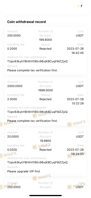 Signore/signora, il mio conto usdc è stato normalmente scambiato da me e pensato prima di due mesi e dall'opzione invita amico avevo invitato il mio amico ed entrambi avevamo fatto il processo di verifica prima di essere registrati e poi abbiamo iniziato a fare trading suggerendoci a vicenda perché il mio amico non conoscevo così tanto la lingua inglese così tanto l'avevo aiutato qualche volta. Nel commercio e qualche volta ho avuto così tante perdite e ho investito più soldi prendendo prestiti e tutto il resto. Ma ora usdc ha congelato il nostro account dicendo che devo fare la verifica fiscale, quindi ho fatto questa verifica ricaricando di usdt il 20% dell'importo che ho in conto dopo che hanno interrotto il mio processo di prelievo e poi la società ha chiesto di nuovo il 10% di deposito nel mio conto per prelevare normalmente altrimenti bloccano il mio conto anche loro dicono che è stato visto un comportamento anomalo, ma voglio chiedere quale comportamento ho sbagliato a dare spiegazioni al riguardo. Ho perso tutti i miei soldi in questo, ora devo rivolgermi alla polizia informatica e non ho più opzioni. Per favore, agisci adeguatamente, altrimenti devo agire contro l'azienda. Ho tutte le prove di alcuni dei miei desideri e sono pronto alla verifica della mia identità Grazie a support@usdc-vip.com la società nominata mi ha truffato portandomi in commercio e chiedendo soldi ancora e ancora, mi hanno congelato conto e non sono in grado di ritirare i miei soldi, mi incolpano per comportamento anomalo e chiedono soldi per sbloccare il mio conto per prelevare, chiedono soldi da depositare sul mio conto in nome del processo di verifica fiscale che avevo fatto 20 % dell'importo nei miei guadagni per importo scambiato