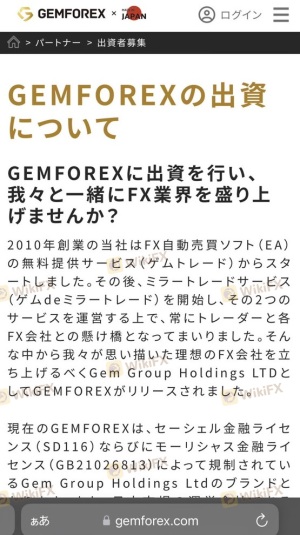 GEMFOREXha ripetutamente negato e ritardato i prelievi per molti utenti dall'anno scorso ad oggi e ha commesso illeciti come la cancellazione dei profitti e il blocco dell'account. io sono una delle vittime GEMFOREX ha organizzato numerose campagne di bonus sui depositi per raccogliere fondi e, inoltre, GEMFOREX ha annunciato sul suo sito ufficiale che sta cercando investitori per 10 milioni di yen per unità, 1.000 unità e 10.000 unità in totale, ma la società chiaramente non ha fondi e sembra essere in uno stato di gomma a terra. sembra che la società non abbia fondi e sia in uno stato appiattito. mi sembra che la società debba presentare una denuncia all'agenzia di servizi finanziari poiché sta sollecitando proprietari (azionisti) nel mercato giapponese. molti utenti, me compreso, sono in guai seri perché non siamo riusciti a prelevare i nostri fondi. Aiutaci per favore. Spero che questo sarà utile per coloro che stanno per utilizzare GEMFOREX o effettuare un deposito.