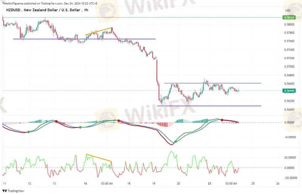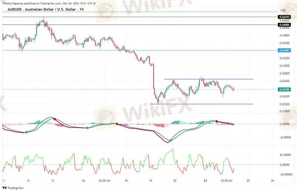 The Australian dollar remains in a consolidation phase, nearing the lower end of its range.