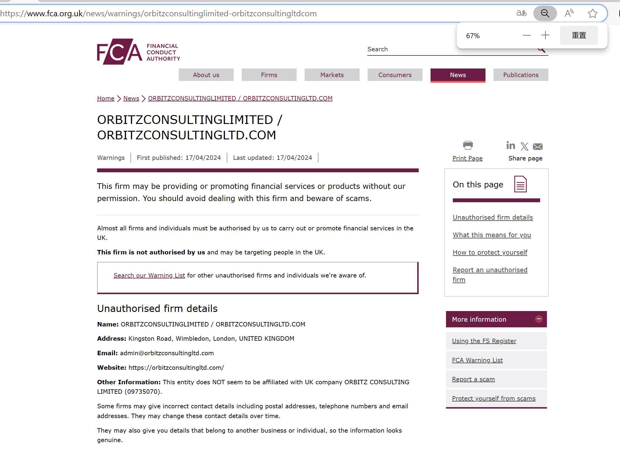 Elenco di avvertimento FCA delle società non autorizzate ORBITZCONSULTINGLIMITED / ORBITZCONSULTINGLTD.COM.