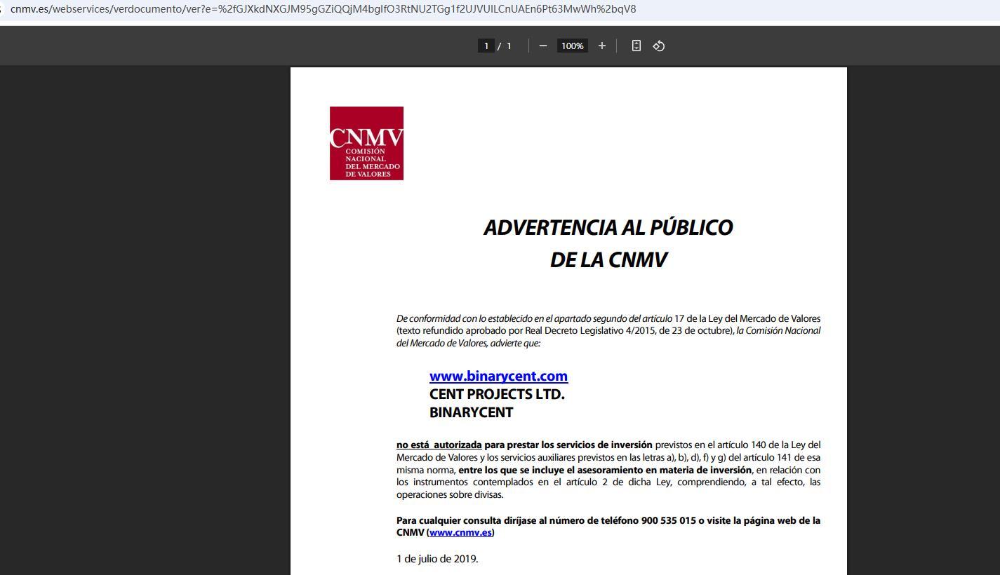 Avviso pubblico della CNMV ai sensi del secondo comma dell'articolo 17 della Legge sul Mercato dei Valori Mobiliari (testo consolidato approvato con Regio Decreto Legislativo 4/2015, del 23 ottobre), la Commissione Nazionale del Mercato dei Valori Mobiliari avverte che: www. Binarycent .com cent projects ltd. Binarycent Non è autorizzata a prestare i servizi di investimento previsti dall'articolo 140 della Legge sul Mercato Mobiliare e i servizi accessori previsti dalle lettere a), b), d), f) e g) dell'articolo 141 della stessa legge, tra cui la consulenza in materia di investimenti, in relazione agli strumenti previsti dall'articolo 2 della suddetta legge, comprese, a tal fine, le operazioni in valuta estera. Per qualsiasi domanda, si prega di chiamare il numero 900 535 015 o di visitare il sito web della CNMV (www.cnmv.es) a partire dal 1° luglio 2019.