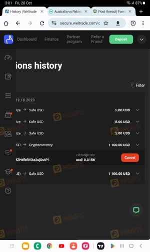 Weltradeの外国為替プラットフォームは、投資家から金を巻き上げるために設計された癌のような存在です!私は彼らの入金プロセスを完全に信頼していましたが、初めての出金時に悪意を持って資金を差し引かれました。5,000ドルの出金をリクエストしたのに、返ってきたのは3,800ドルだけでした。カスタマーサービスに理由を尋ねると、「プラットフォームサービス料」や「為替レートの差」などと嘘をつきました。事前に何の説明もありませんでした。彼らの取引戦術はさらに腹立たしいものです。市場が変動するたびに、意図的に取引を遅らせ、操作できる頃には最適なポイントを逃し、すべての損失をユーザーに押し付けます。ストップロスとテイクプロフィットの設定は完全に無意味です。何度もストップロスとテイクプロフィットのレベルに達しているのに実行されず、利益が損失に変わるのをただ見ているしかありませんでした。外国為替取引を考えている方は、Weltradeから遠ざかることを強くお勧めします。