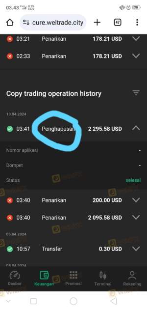 ブローカーのWeltradeは、インドネシアの何百万人ものクライアントを騙し、インドネシアの何百人もの提携者(IB)をだましました。 ブローカーのWeltradeは、私の提携アカウントをブロックし、私の大きな提携手数料を支払うことを拒否しました。 Weltradeに関わる人は誰でも、このブローカーを即座に避けてください。後悔します、私の言葉を信じてください。