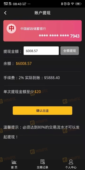 外国為替詐欺プラットフォーム全体が詐欺です。入金またはプランに従わない限り、アカウントをアップグレードするように指示されるか、APPを直接開くことができず、アカウントの残高を引き出すことができません。撤退するには、消費量がその日の涵養量を80%超えなければならないと言われています。結局、家庭教師は姿を消した。外国為替に投資する皆さん、慎重に投資していただければ幸いです。