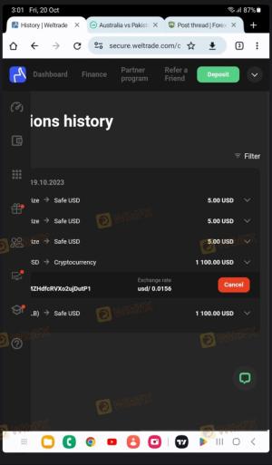 Weltrade.com ( weltrade.in ) が私の1100ドルの出金を処理していません 私のアカウントは完全に認証済みですが、1日経っても保留中です。実際、彼らの標準的な出金処理時間は30分だけです。さらに、彼らは私のプロフィールをブロックし、チャットサービスもブロックしました。私は彼らにアクセスすることも、苦情を申し立てることも全くできません。