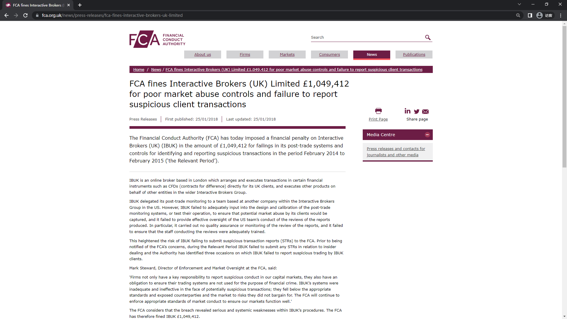 インタラクティブuk はロンドンに拠点を置くオンライン ブローカーであり、英国の顧客のために直接 cfds (差金決済契約) などの特定の金融商品の取引を手配および実行し、より広い範囲の他のエンティティに代わって他の商品を実行します。 インタラクティブグループ。 インタラクティブ英国は、取引後の監視を英国内の別の会社に拠点を置くチームに委任しました。 インタラクティブ米国のグループ。でも、 インタラクティブ英国は設計と校正に適切に入力できませんでした インタラクティブ取引後監視システムの配給、またはその運用をテストして、クライアントによる潜在的な市場の悪用が確実に把握されるようにし、作成されたレポートのレビューの米国チームの実施を効果的に監視することができませんでした.特に、報告書のレビューの品質保証や監視を実施しておらず、レビューを実施するスタッフが適切に訓練されていることを確認できませんでした。これはリスクを高めました インタラクティブ英国は疑わしい取引報告 (strs) を FCA に提出できませんでした。関連する期間中、FCAの懸念が通知される前 インタラクティブ英国はインサイダー取引に関連するいかなる証拠も提出していません。 インタラクティブ英国は疑わしい取引を報告しなかった インタラクティブ英国のクライアント。 FCA の執行および市場監視担当ディレクターである Mark Steward 氏は、次のように述べています。 インタラクティブ資本市場での疑わしい行為を報告する権限がないだけでなく、彼らの取引システムが金融犯罪の目的で使用されないようにする義務もあります。 インタラクティブ英国のシステムは、潜在的に疑わしい取引に対して不十分であり、効果がありませんでした。彼らは適切な基準を下回り、取引相手と市場を彼らが交渉しなかったリスクにさらしました。 FCA は、市場が適切に機能することを保証するために、市場行動の適切な基準を引き続き実施します。 FCA は、侵害により重大かつ組織的な弱点が明らかになったと考えています。 インタラクティブイギリスの手続き。したがって、FCAは罰金を科しました インタラクティブ英国£1,049,412。