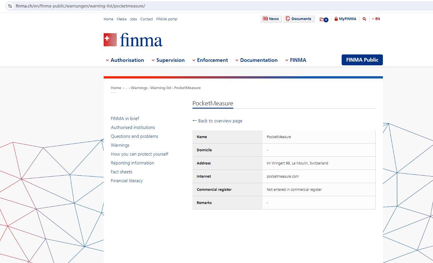 無許可の企業および個人の警告リスト 警告リスト - pocketmeasure.com.