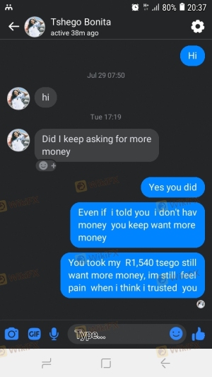 私はFacebookに投稿を見ました、そして私は彼女に300を投資しましたそして3日後に彼女は私が撤退のために支払う必要があると言いました私は30分後に540を支払います彼女はブローカーが私と話したいと私に言いました私は1000を支払う必要があります私は彼に700しか持っていないと言いました1時間後にそれを送ります女性は私の利益が多すぎると私に言いました私はさらに500を支払う必要があります私は彼女にお金を持っていないので私の話をしました。