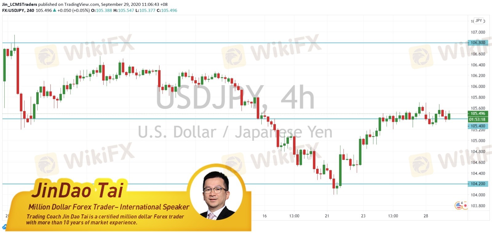 Overall, USD/JPY is ranging across. Recently, USD/JPY has been moving around the resistance level of 105.400.