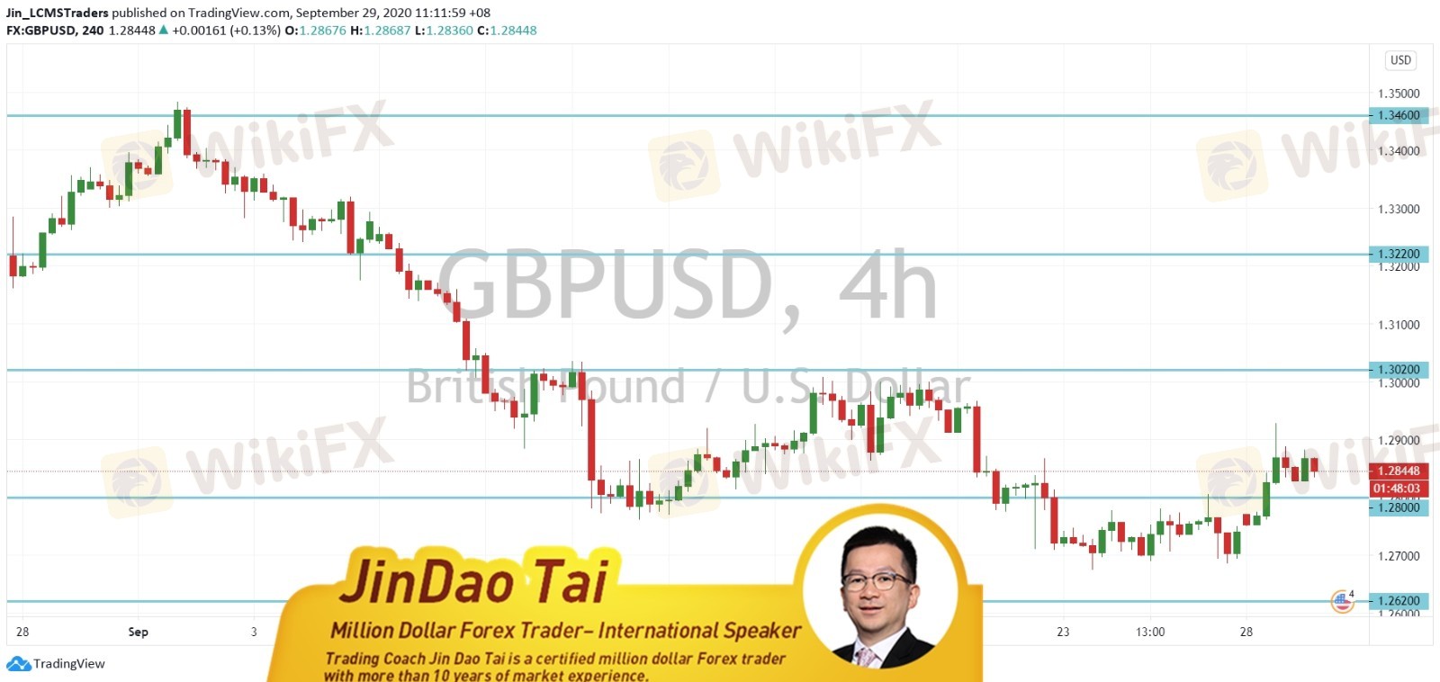 Overall, GBP/USD is trending downwards. Recently, GBP/USD broke the resistance zone of 1.28000 and bounced down from the key level of 1.29.