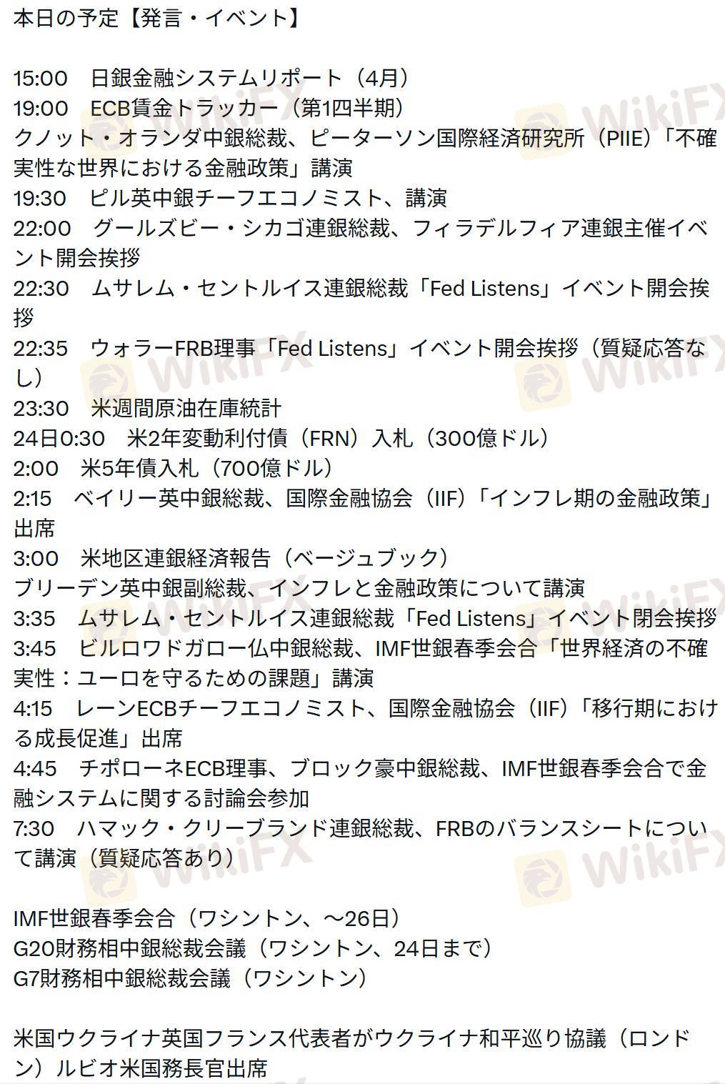 4:45 チポローネECB理事、ブロック豪中銀総裁、IMF世銀春季会合で金融システムに関する討論会参加