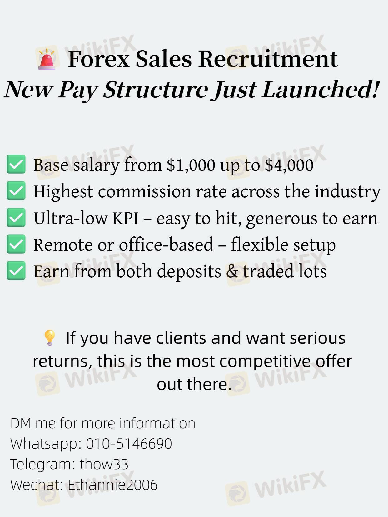 ✅ Base salary from $1,000 up to $4,000 ✅ Highest commission rate across the industry ✅ Ultra-low KPI – easy to hit, generous to earn ✅ Remote or office-based – flexible setup ✅ Earn from both deposits & traded lots 💡 If you have clients and want serious returns, this is the most competitive offer out there.