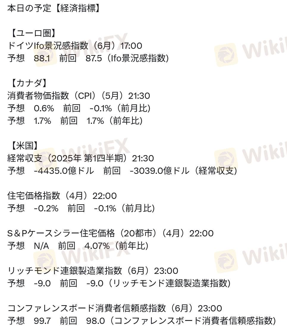 ドイツIfo景況感指数(6月)17:00