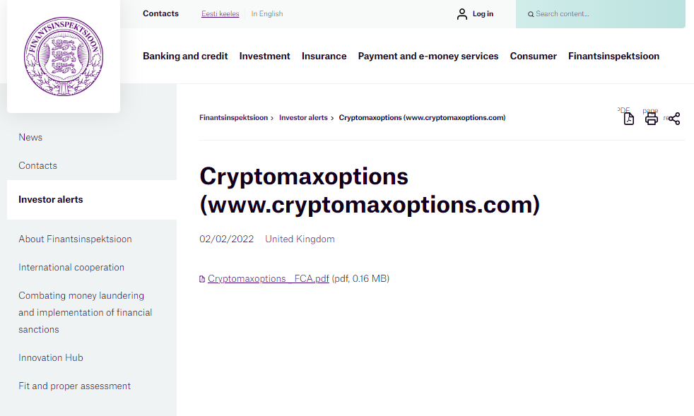 投資家向け警告 - クリプトマックスオプションズ.