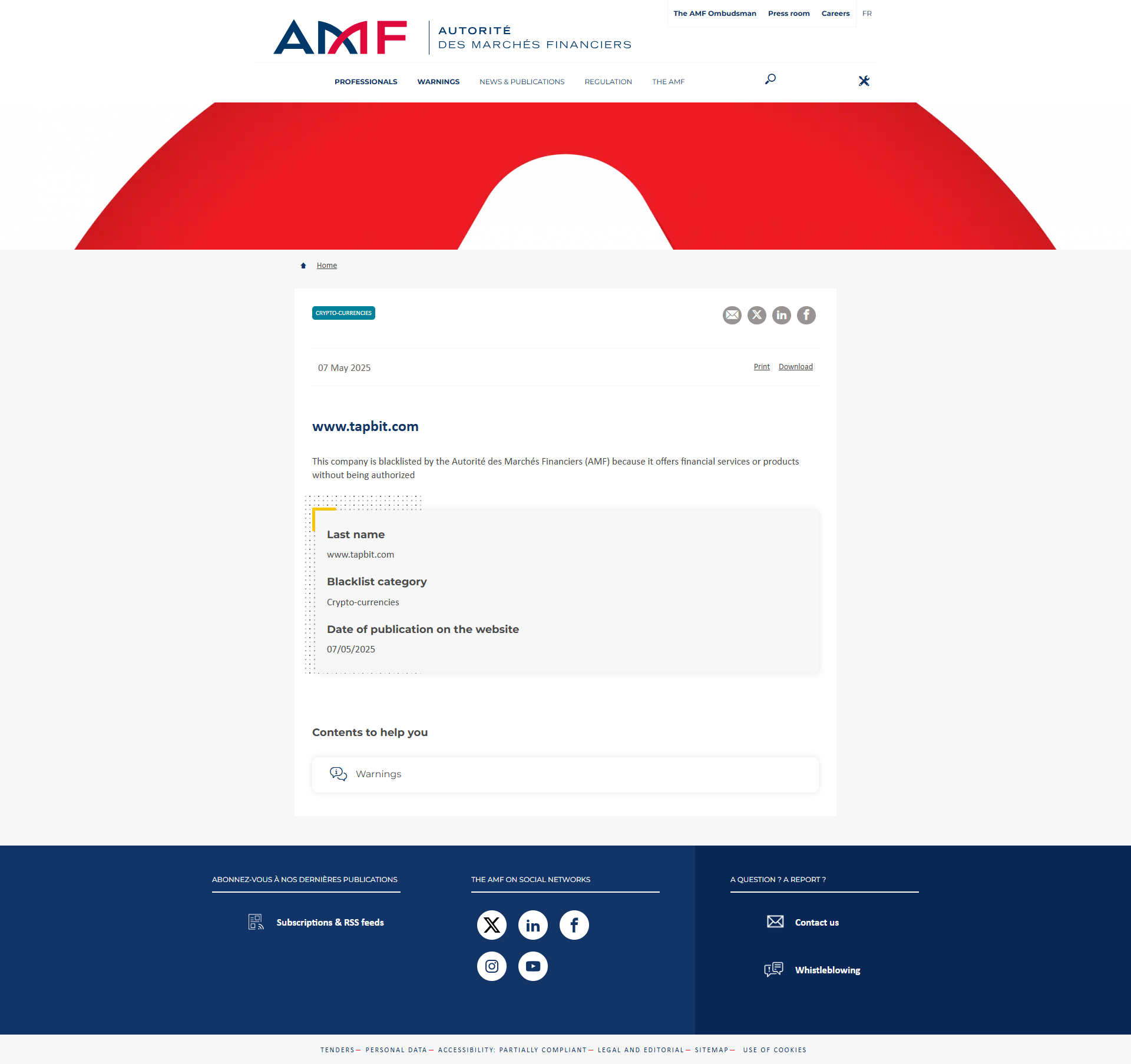 Autorité des Marchés Financiers (AMF) は、フランスの金融市場、その参加者、および市場を通じて流通する投資商品を規制しています。 また、投資家に適切な情報を確実に提供し、欧州レベルと国際レベルの両方で規制変更の推進力となります。 AMFは、それらを規制、認可、監視し、必要に応じて検査、調査、執行することが求められています。 金融規制および国際規制に必ず貢献してください。 また、投資家に適切な情報を提供し、必要な場合には当社の金融オンブズマンを通じて支援を提供することも保証します。 独立した公的機関として、AMF は規制権限を有し、財務上および経営上かなりのレベルの独立性を持っています。