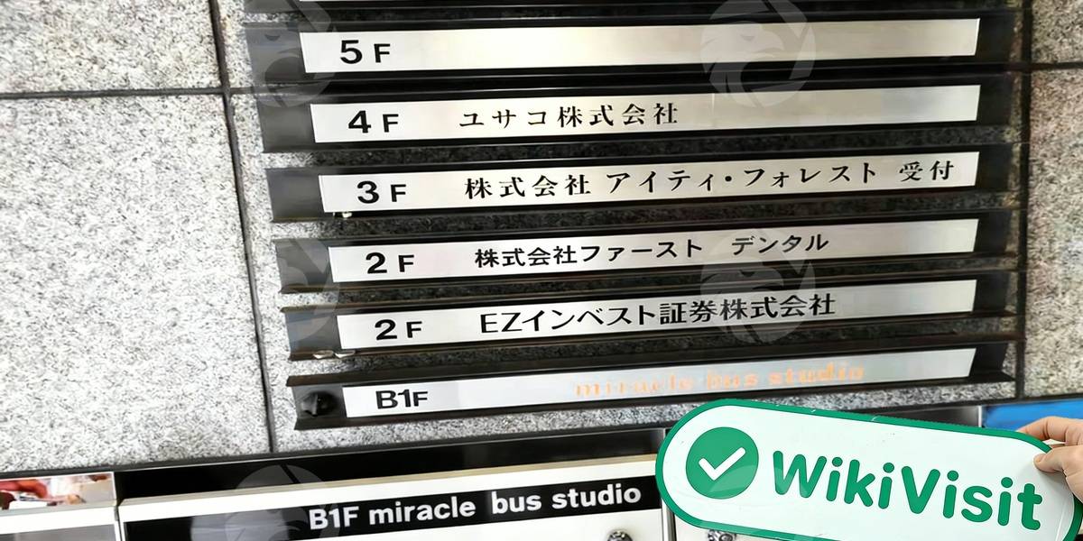 EZインベスト証券のオフェスは、東京都の麻布十番駅と赤橋駅の間にあります。建物に入るには許可が必要なため、調査チームは外からしか撮影できませんでした。 オフェスの内部を撮影することはできなかったが、フロアガイドで会社案内があります。