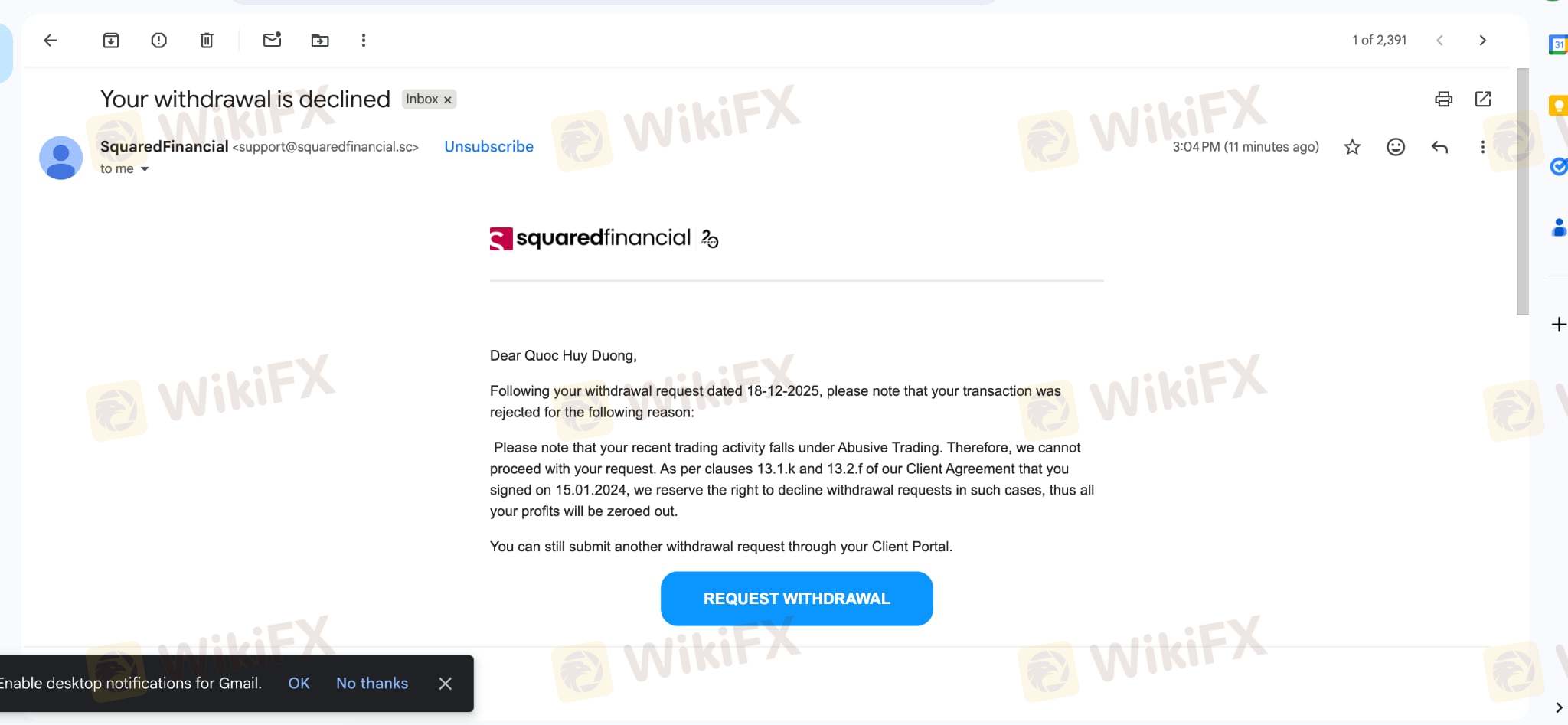 법적 고지 및 최종 경고 – 불법적인 자금 공제, 계정 차단 및 출금 방해 수신: Assexmarket 관리 / 준수 부서 본 통지는 귀사의 내 거래 계정에 대한 불법적이고 비윤리적인 행위에 관한 최종 법적 경고입니다. 나는 Assexmarket 계정에 1,005달러를 입금했습니다. 그러나 내 동의, 사전 통지 또는 합법적인 근거 없이 귀사는 400달러를 불법적으로 공제하고 605달러만 남겼습니다. 사용 가능한 잔액이 있음에도 불구하고 출금 요청을 제출할 수 없었습니다. 이후 설명 없이 내 계정이 차단되었습니다. 나중에 계정이 차단 해제되었다는 통지를 받았지만, 다시 출금을 시도했을 때 계정이 두 번째로 차단되었습니다. 이러한 행위는 다음과 같습니다: 무단 자금 압류 고의적인 출금 방해 방해 브로커 권한 남용 고객 자금 보호 원칙 위반 본인은 72시간 이내에 다음과 같이 정식으로 요구합니다: 1. 본인 계정의 즉각적이고 영구적인 차단 해제 2. t에 대한 전액 환불