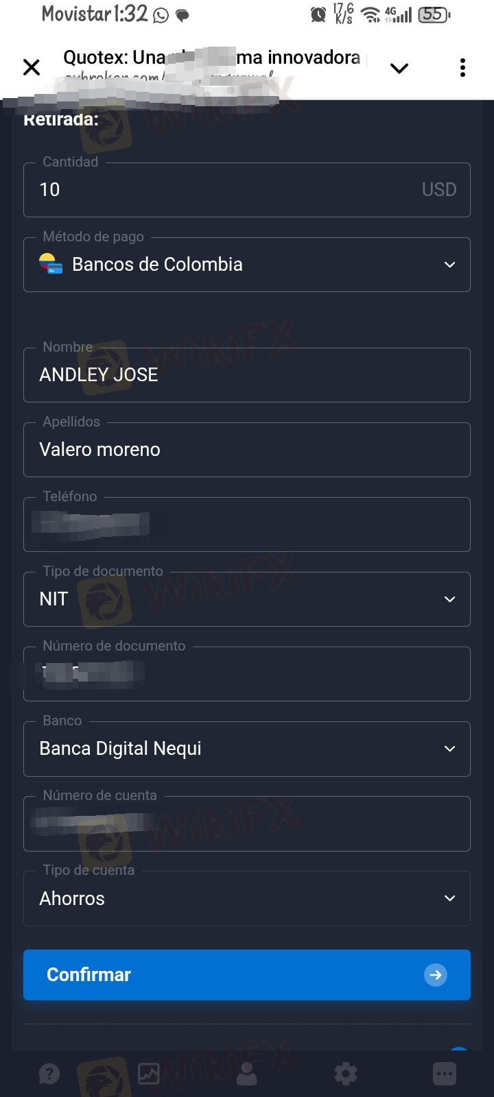 Quotex은 다양한 기구를 제공하는 거래 플랫폼입니다. 통화 견적, 주식, 암호화폐, 금속, 주요 통화, 석유 및 가스를 포함합니다. Quotex은 데모 계정과 24시간 고객 지원도 제공합니다. 최소 입금액은 $10입니다. 거래자들은 첫 입금에 30%의 보너스를 받을 수 있습니다. 그러나 Quotex은 여전히 규제되지 않은 상태, 필요한 구체적인 정보가 없으며, 자금 인출에 어려움이 있는 부정적인 리뷰도 있어 위험합니다.