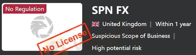 SPN FX과 거래하는 것은 규제 감독 부재로 인해 상당한 위험을 수반합니다.
