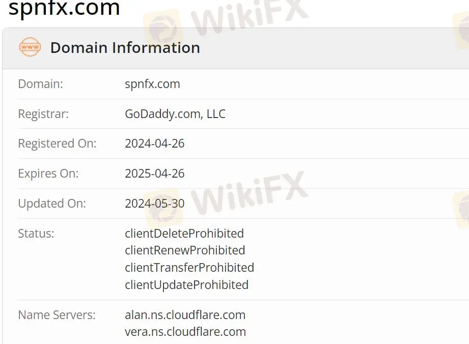 SPN FX은 운영을 감독하는 규제 기관이 없이 운영됩니다. 이러한 규칙의 부재로 인해 투자자들은 감시 기관이 없기 때문에 더 높은 위험에 노출될 수 있습니다. 도메인 spnfx.com은 2024년 4월 26일에 등록되었으며, 소유자가 도메인 이전을 금지한 상태입니다.
