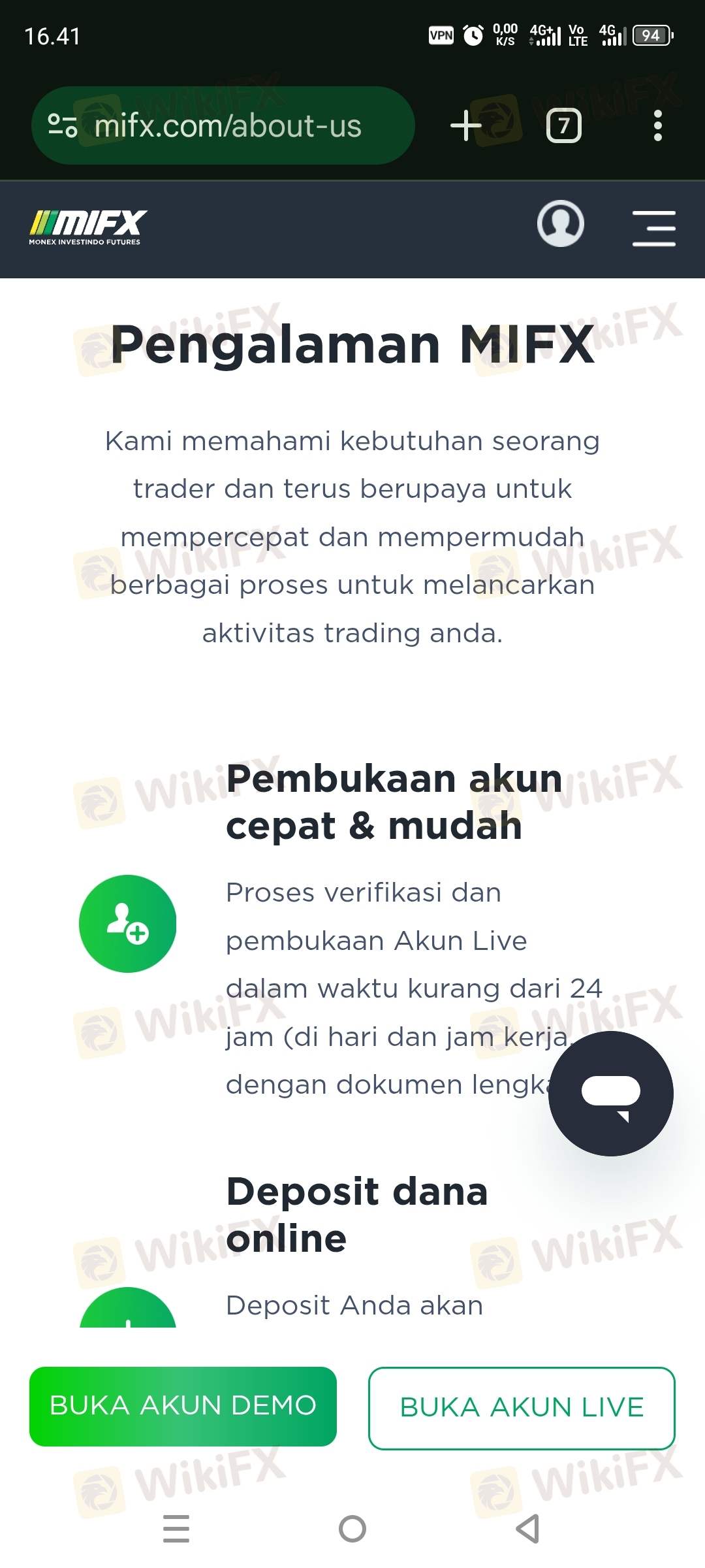 Monex Investindo Futures (MIFX)은 2000년에 설립된 인도네시아의 선도적인 브로커로 외환 부문에서 30% 이상의 시장 점유율을 보유하고 있습니다. 이는 자카르타 선물 거래소(JFX)와 인도네시아 상품 파생품 거래소(ICDX)의 회원으로, BAPPEBTI(라이센스 번호: 178/BAPPEBTI/SI/I/2003)로부터 소매 외환 라이센스를 보유하고 있습니다.