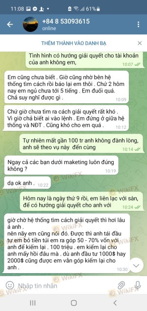 나는 묻는다ACX 기술 개입으로 인해 FX 플랫폼이 2246371250vnd($100000) 금액을 반환하고 내 모든 돈을 충당하기 위해 활성화되었습니다. Nghiem이 내 집에 와서 돈을 입금하도록 유혹했습니다.ACX 수수료 없음, 하룻밤 무료, 보너스를 약속하는 증권 거래소. 그와 그의 기술 공범자들이 내 계정에 개입하여 자산 처분 계정을 불태웠습니다. 활성화 시 화면 녹화 영상과 사진의 증거!