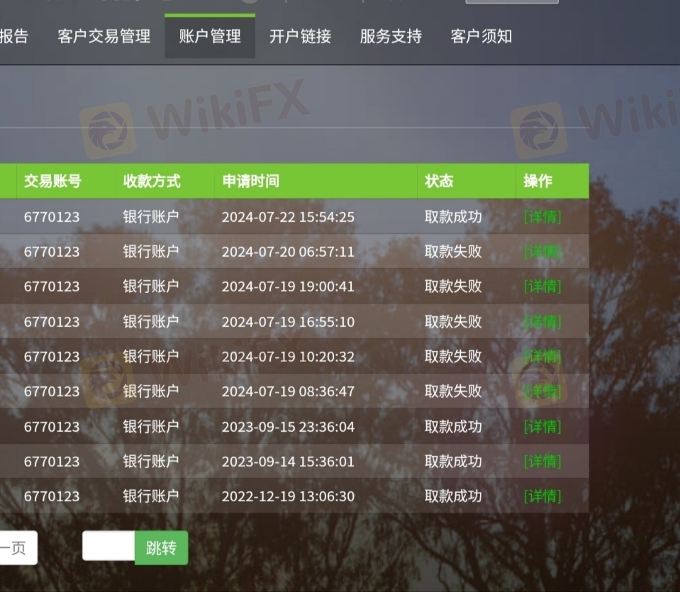 중국 공상은행으로의 인출을 지원하지 않기 때문에 계좌 6770123의 인출 요청이 거부되었습니다. 우리는 고객에게 다른 개인 은행 카드로 인출을 변경하도록 요청하는 이메일을 여러 차례 보냈지만, 고객은 이를 수행하지 않았습니다. 현재 고객은 인출 과정을 위해 중국 은행 카드로 교체하였습니다. 자금은 은행에 제출되어 처리되고, 약 2 영업일 이내에 도착할 것으로 예상됩니다. 우리의 인출 과정에는 문제가 없습니다. 불필요한 오해를 피하기 위해 우리가 보낸 이메일 정보에 주의해 주시기 바랍니다.