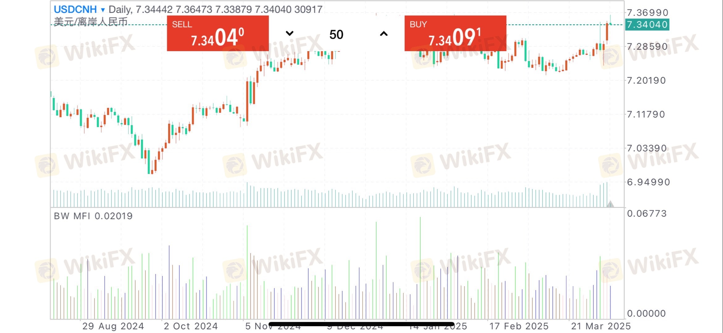 업계에서USD/CNH 多头持续蓄力,有望突破7.3469