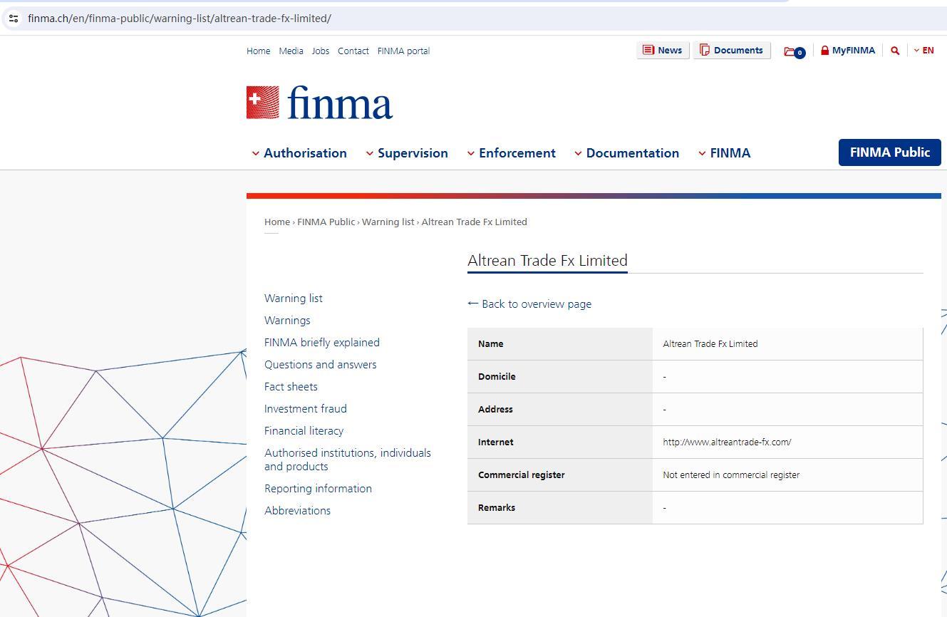 승인되지 않은 회사 및 개인에 대한 경고 목록 경고 목록 - http://www.altreantrade-fx.com/.