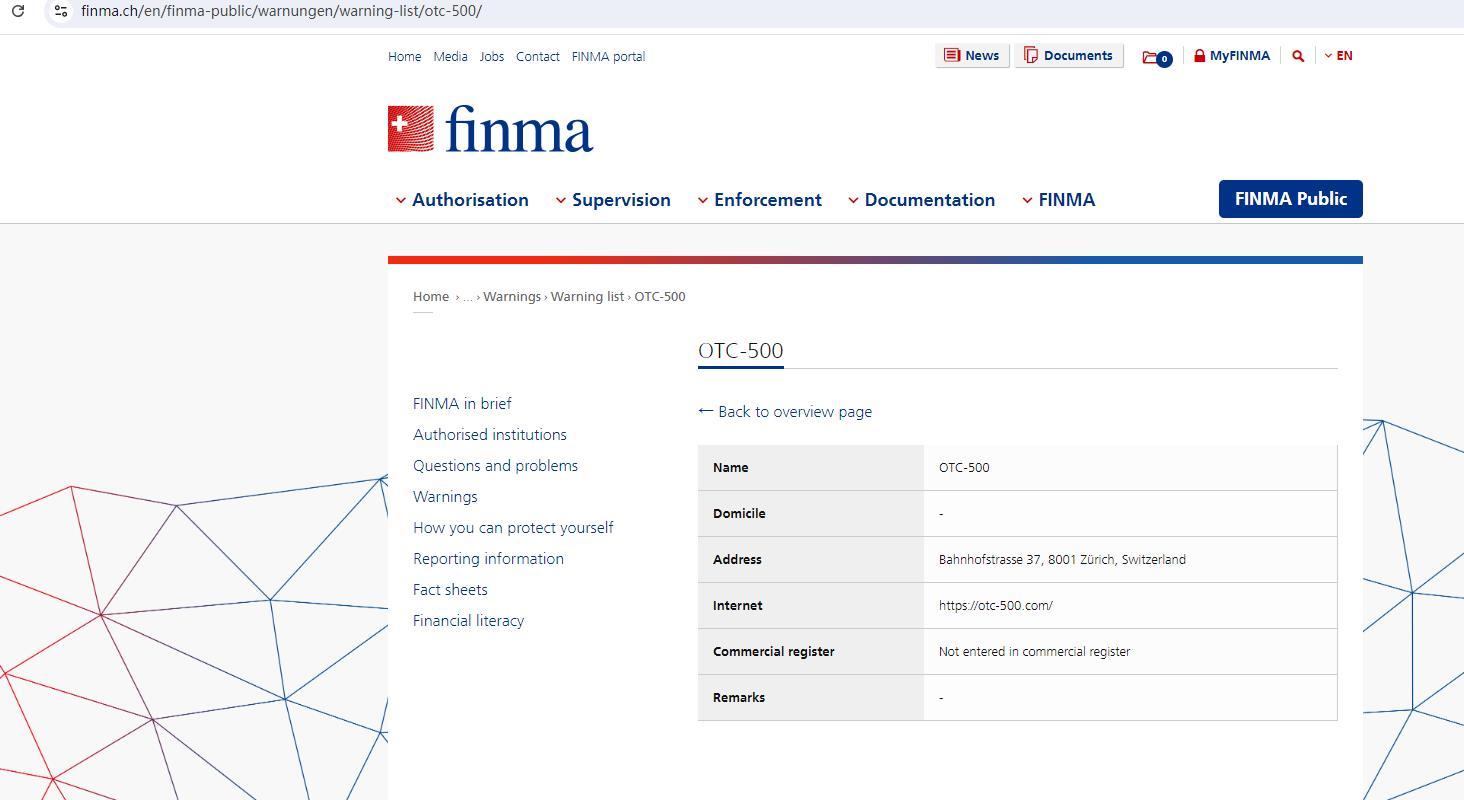 미승인 기업 및 개인 경고 목록 경고 목록 - https://otc-500.com/.