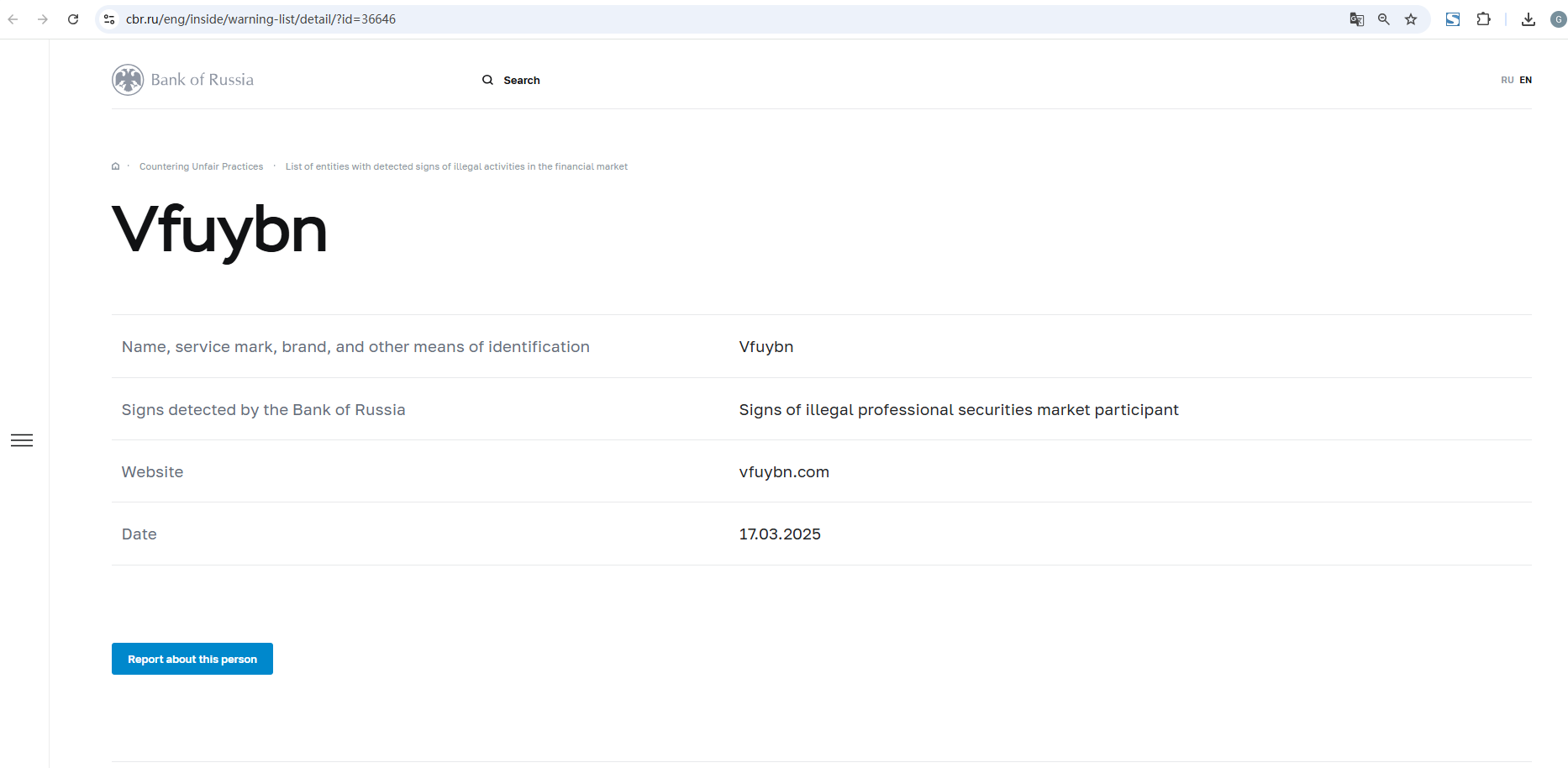 러시아 중앙 은행 (Central Bank of Russia)은 러시아 중앙 은행이며 모스크바에있는 Neglinnaya Street에 본사를두고 있다. 러시아 법률에 따르면, 상반기 은행 이윤은 러시아 정부의 연방 예산으로 계산되어야한다. 청산의 일원이다. 2015년 2월 28일 까지의 은행 예금은 3602 억 달러이며 금리는 11.5 %이다. 러시아 중앙 은행 (Central Bank of Russia)은 1990 년 7 월 13 일 헌법에 의해 설립되었다. 자국 통화인 루블화의 보호하고 안정화시키는 것을 주된 책임을 맡고 있다. 러시아 은행업의 주요 감독 기관으로 은행 허가, 은행 업무 규정 및 회계 원칙, 신용 대출 기관을 담당한다. 러시아 중앙 은행 (Central Bank of Russia)은 모스크바와 상트 페 테르 부르크 조폐소와 Goznak 조폐 국을 통해 루블화를 발행 할 독점권을 가지고 있다. 2010년, 탄생 150주년을 맞아 5kg 기념 Alexander II 동전을 출시하였다. 러시아 중앙 은행 웹 사이트는 러시아의 금융 통계 데이터, 분석 보고서, 은행법 요약, 중앙 은행의 역사, 법적 권한, 보도 자료 등을 제공한다.