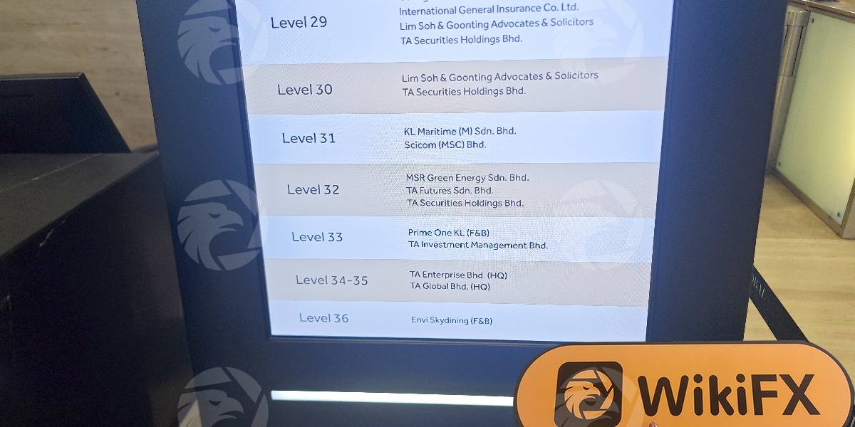 투자자 이익을 엄격히 보호한다는 사명감으로 움직이는 전문적이고 경험 많은 현장 검증 팀은 말레이시아에 위치한 것으로 주장하는 거래업체에 대한 현장 검증을 위해 "말레이시아 쿠알라룸푸르 50250, Jalan P. Ramlee 22, Menara TA One 34층"TA Enterprise으로 신중하게 계획을 세우고 이동했습니다.