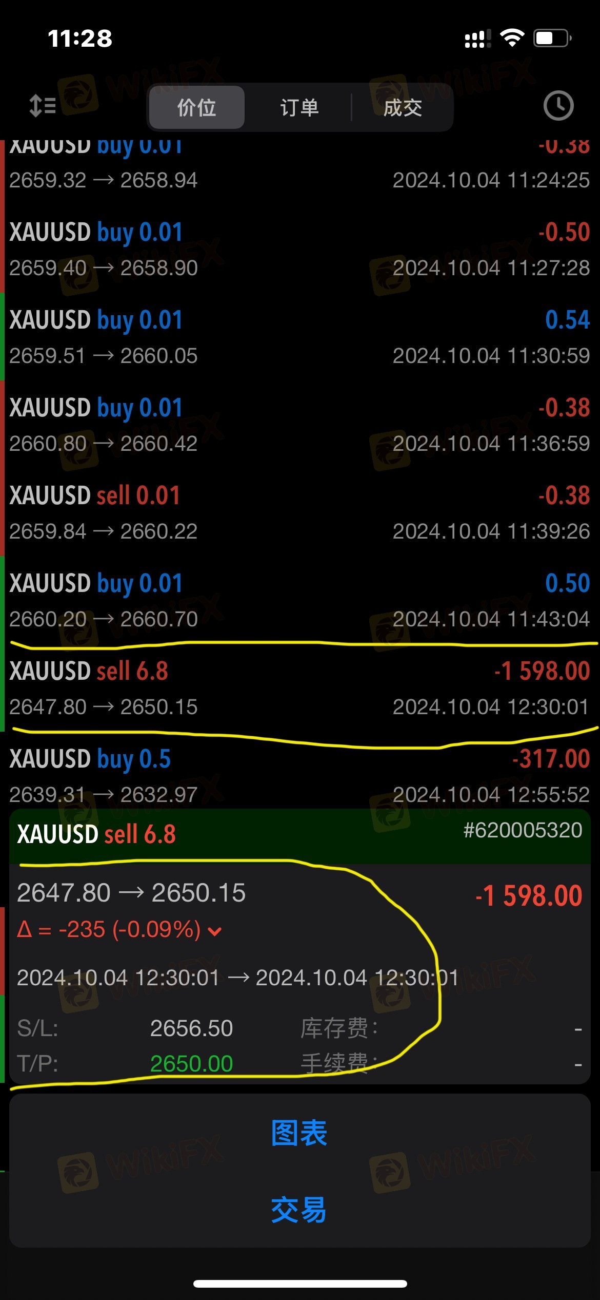 AC capital公司,未按客户指令成交,划点严重,造成客户损失。 如下图1所示,当时我在黄金2656.5美元成功卖出6.8手,后来行情跌到2647.8,按理我是赚了,实际aC capital平台却在2650.15位置给我了结,并且还让我损失。 我卖出6.8手黄金,在2647.8成交赚5916美元,实际确还倒扣我1598美元。要求平台补偿我应得的利润7514美元。