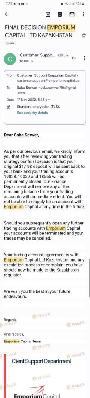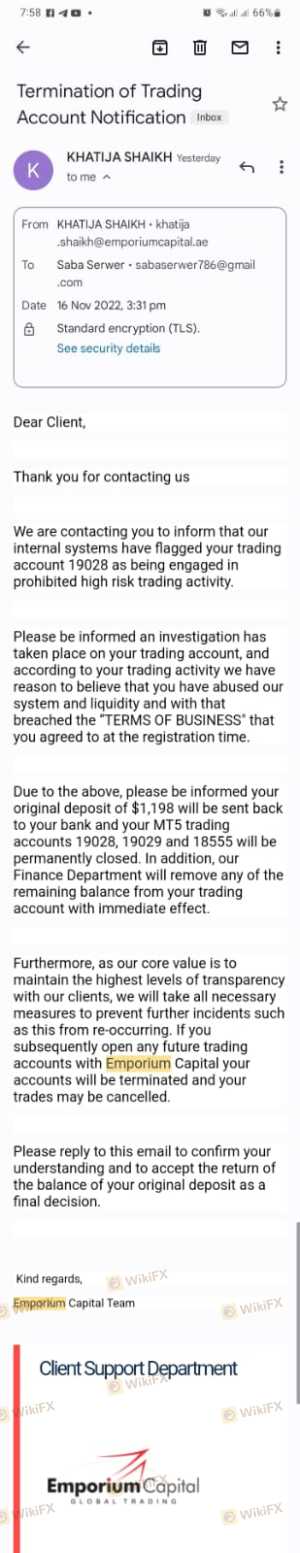 emporium capital broker scammed me, I deposit 1198$. I traded in US share, they changed price, they corrected when i emailed. I do 5757.70$ profit but as i do internal transfer they stole my profit and told they have issue with strategy and they only give deposit amount. But same strategy was used by my husband mt516734. He was loosing so they don't have issue with him. They just have issue with me because i was in profit. Stay away